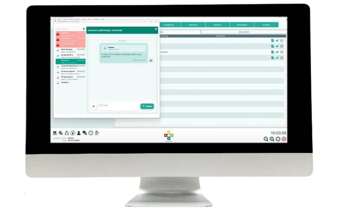 Internal Communication: The internal chat is a functionality integrated into the hospital system, designed for medical and administrative staff, enabling fast and secure communication within the team. Users can initiate one-on-one or group conversations directly from the patient’s record or from other modules, facilitating real-time collaboration.